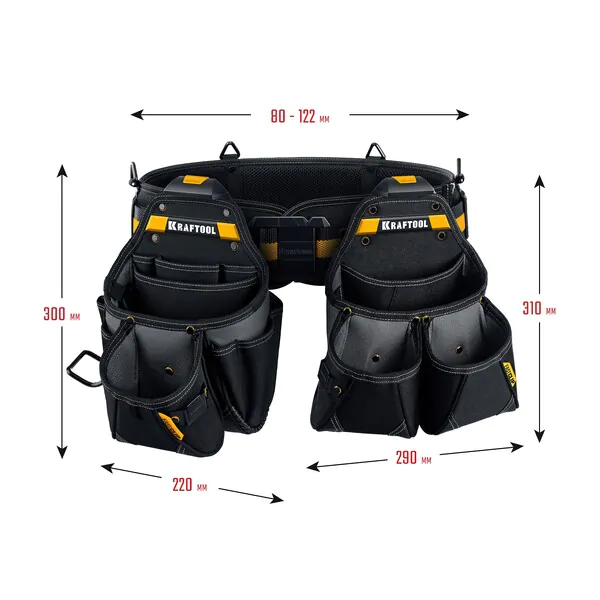 - KRAFTOOL KBS-3L пояс монтажника, в комплекте: пояс монтажника и 2 большие сумки (38761)