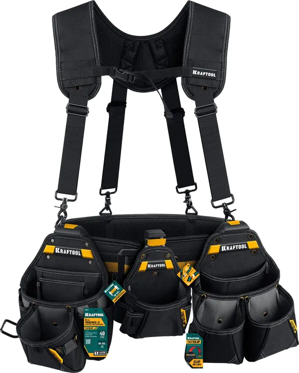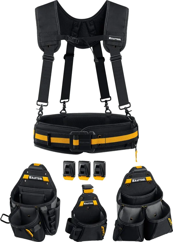 - KRAFTOOL KBS-5 пояс монтажника, в комплекте: пояс монтажника, подтяжки и 3 сумки (38760-5)