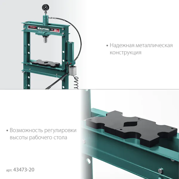 - KRAFTOOL PMD-20, 20 т, гидравлический пресс с гидронасосом и пневмоприводом (43473-20)