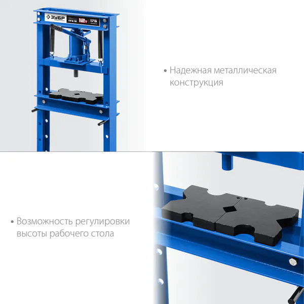 - ЗУБР ПГД-12, 12 т, гидравлический пресс с домкратом и возвратными пружинами, Профессионал (43070-12)