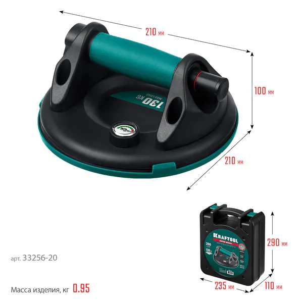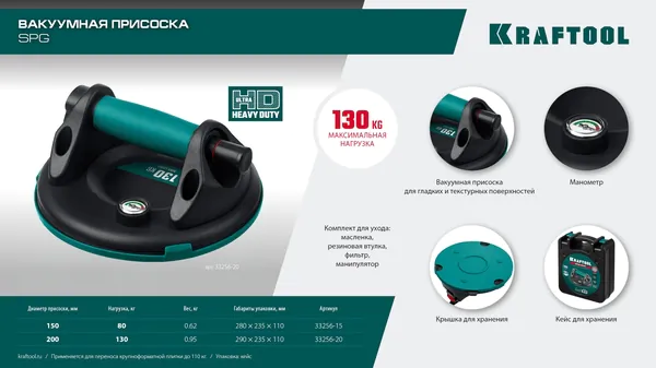 - KRAFTOOL SPG-200 (130 кг, 200 мм) вакуумная присоска с манометром (33256-20)