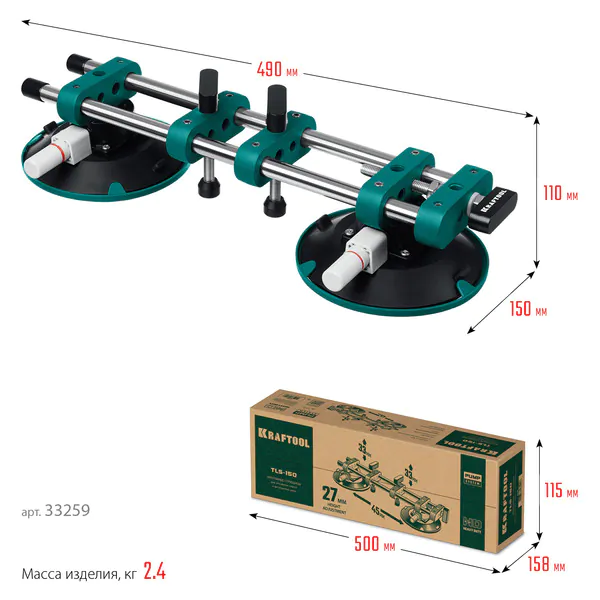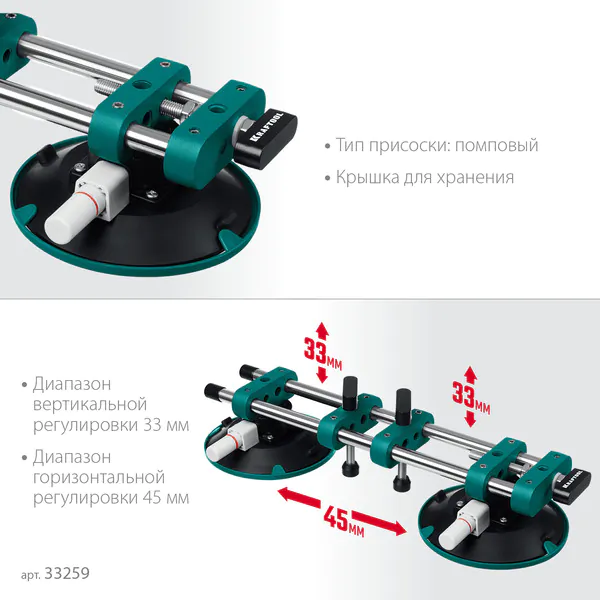 Присоска вакуумная KRAFTOOL TLS-150 (45мм регулировка) для стягивания плит и регулировки шва 33259