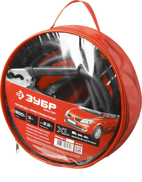 - ЗУБР 400 А, 3 м, пусковые морозостойкие провода (59330-400-3)