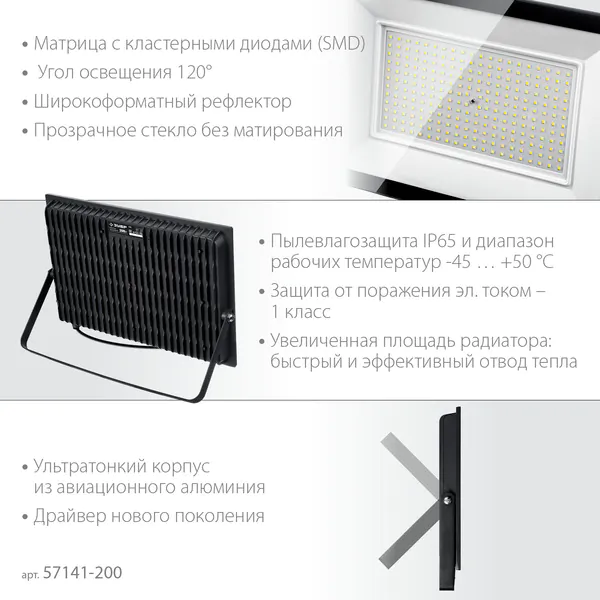 - ЗУБР ПСК-200, 200 Вт, 6500 К, IP 65, светодиодный прожектор, Профессионал (57141-200)