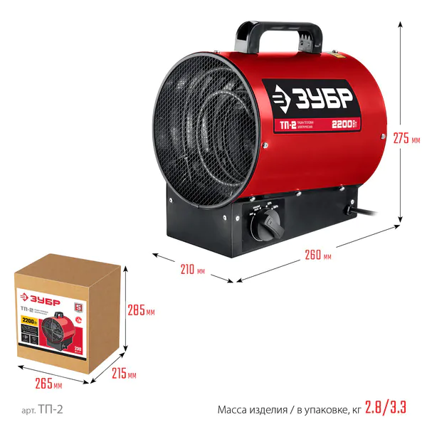 - ЗУБР 2 кВт, электрическая тепловая пушка (ТП-2)