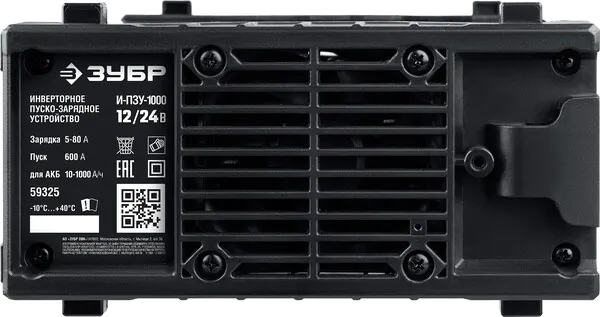 - ЗУБР И-ПЗУ-1000, 12/24 В, 600 А, 5-80 А, инверторное пуско-зарядное устройство (59325)