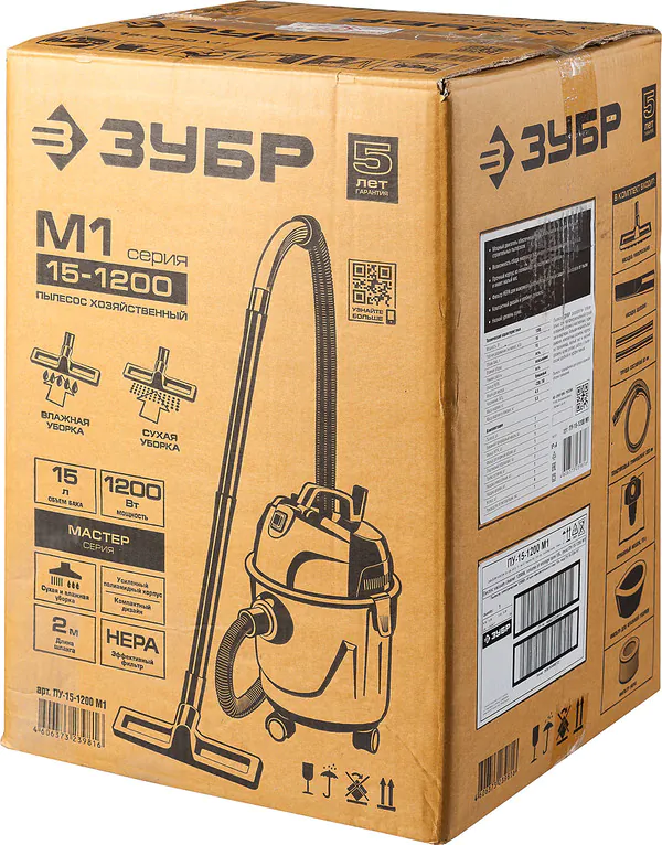 - ЗУБР М1, 15 л, 1200 Вт, хозяйственный пылесос (ПУ-15-1200 М1)