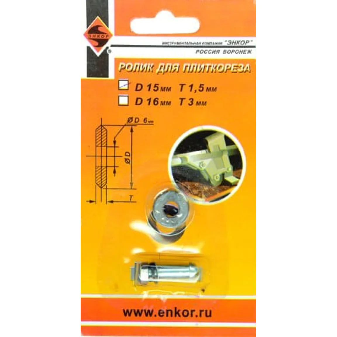 - • РОЛИК К ПЛИТКОРЕЗУ ЭНКОР 16*3,0 (С ОСЬЮ) 4074;