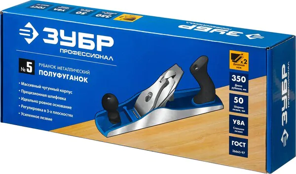 Рубанок металлический ЗУБР Профессионал Полуфуганок, 350 х 60 мм, №5 18505-35_z02