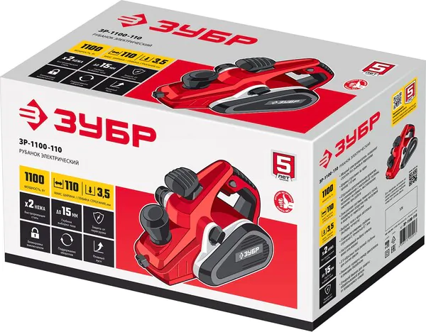 - ЗУБР 1100 Вт, 110 мм, электрический рубанок (электрорубанок) (ЗР-1100-110)