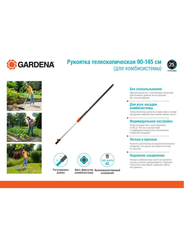 - • рукоятка телескопическая Gardena 90-145 см 03719-20.000.00.