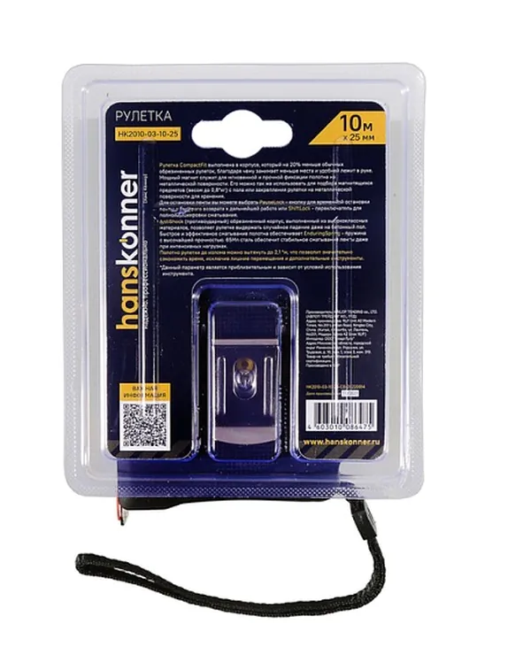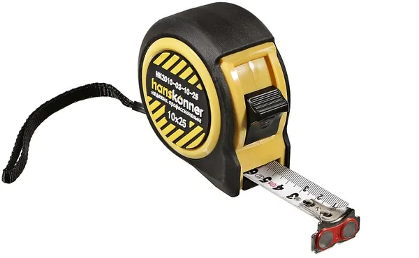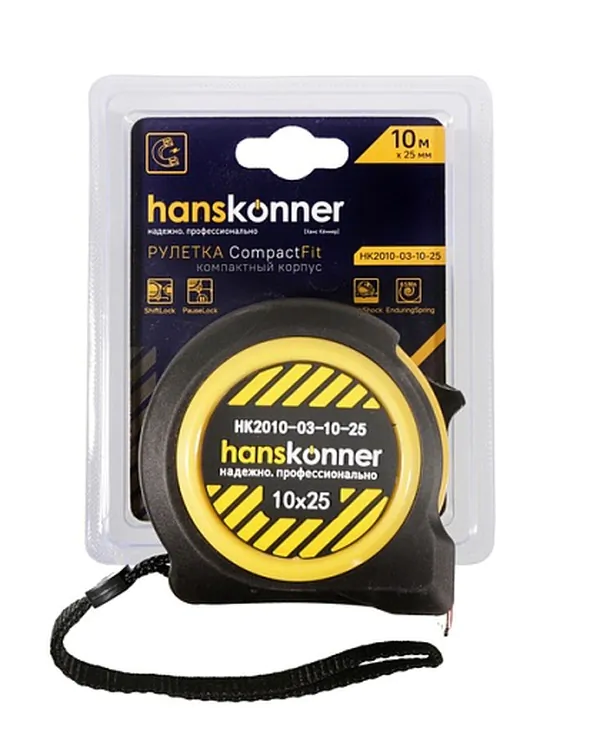 - • рулетка Hanskonner 10x25, мощн.магнит, 2 стопа,корпус на 20% КОМПАКТ.СТАНДАРТНОГО, HK2010-03-10-25.