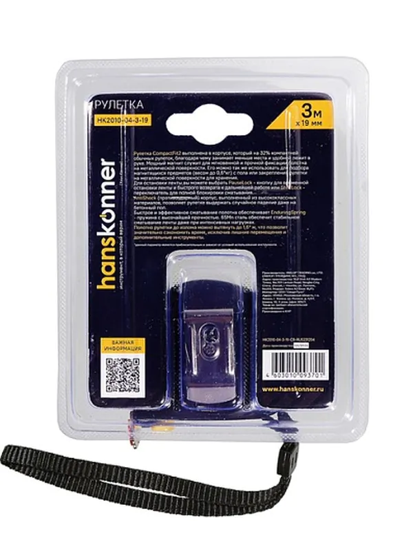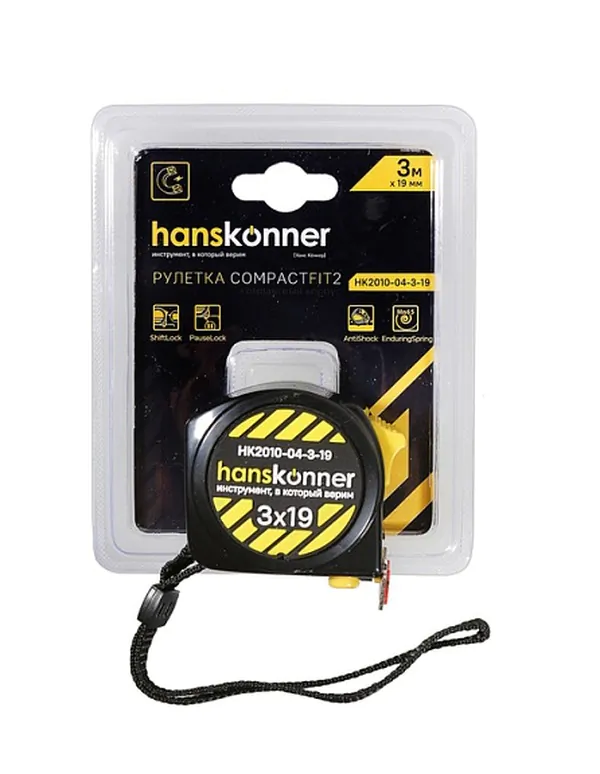 - • рулетка Hanskonner 3x19, суперкомпакт, на 32% компактней, 2 стопа, мощный магнит, HK2010-04-3-19.