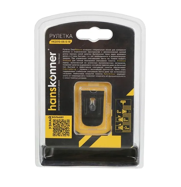 - • рулетка Hanskonner 5x19 мм, с окном для считывания внутренних размеров, HK2010-06-5-19.