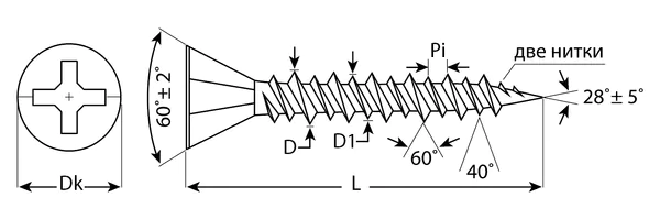 - ЗУБР 45 х 3.9 мм, двухзаходная резьба, фосфатированное покрытие, 5000 шт, саморез для ГВЛ (4-300050-39-045)