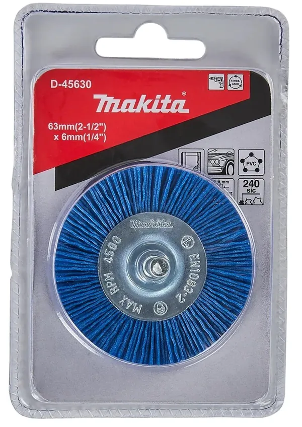 Щетка нейлоновая Makita дисковая (d63 мм, синяя, G240, 6 мм) D-45630