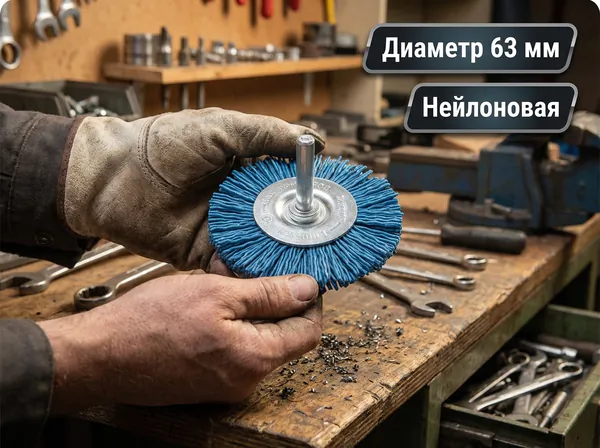- • щетка нейлоновая Makita дисковая (d63 мм, синяя, G240, 6 мм) D-45630.