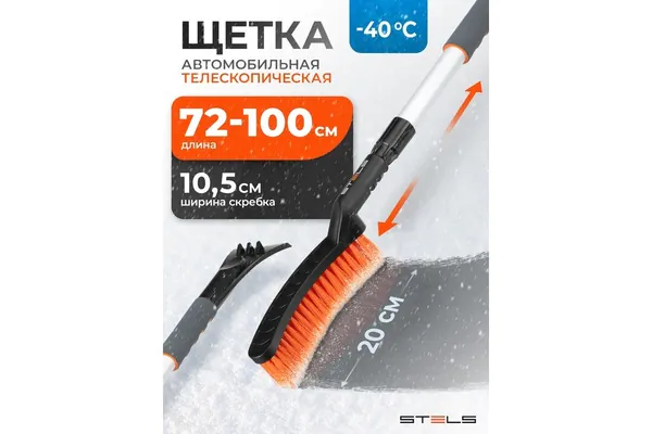 - • щетка-сметка для снега Stels со скребком телескопическая 725-1005 мм 55304.