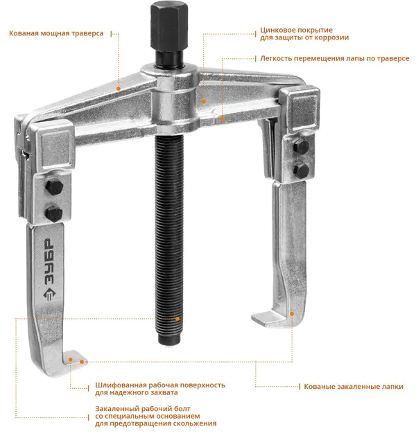 Съемник раздвижной 2-захватный Зубр Профессионал 150мм 43310-200-150
