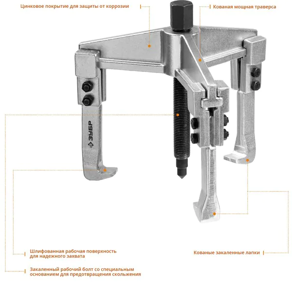 Съемник раздвижной 3-захватный Зубр Профессионал 90мм 43312-180-090