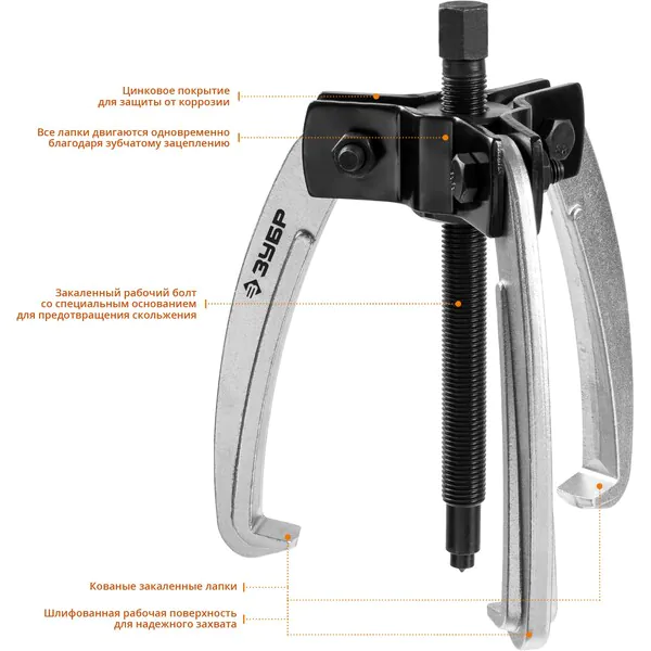Съемник шарнирный Зубр Профессионал серповидный, трехзахватный d50-200мм 43323-160