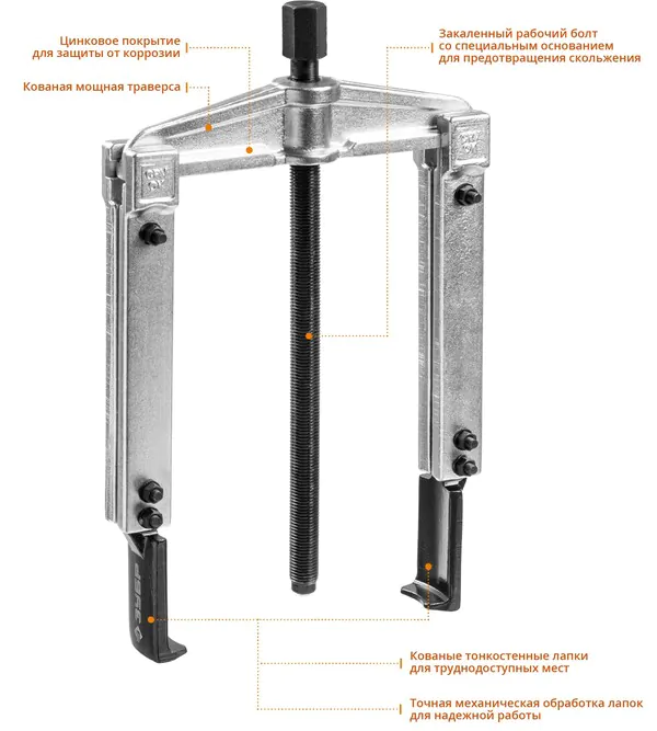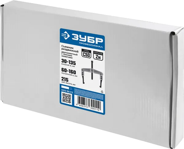 - ЗУБР внешний d 30 - 135 мм внутренний d 60 - 160 мм, раздвижной двухзахватный съемник с тонкими захватами, Профессионал (43313-160-215)