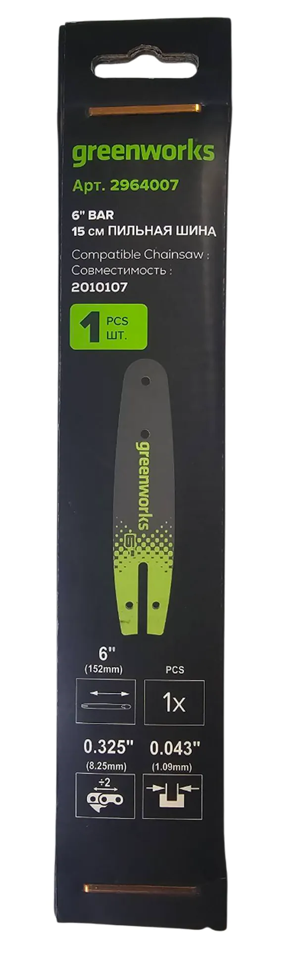 - • шина для садовых пил GreenWorks 15 см 152 мм (6"). 1,1 мм (для пилы 2010107) 2964007.