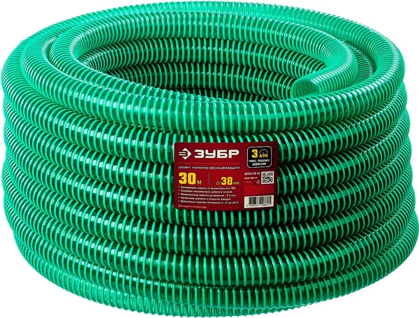 - ЗУБР 38 мм x 30 м, 3 атм, со спиралью ПВХ, напорно-всасывающий шланг (40325-38-30)