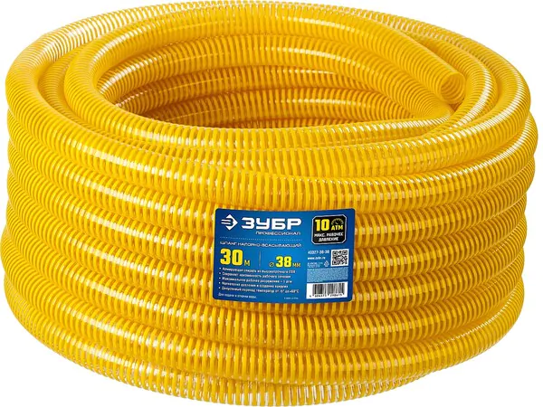 - ЗУБР 38 мм x 30 м, 10 атм, со спиралью ПВХ, напорно-всасывающий шланг, ПРОФЕССИОНАЛ (40327-38-30)