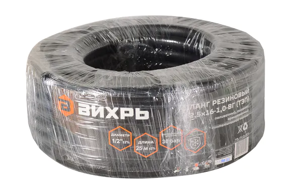 Шланг Вихрь резиновый армированный, 12,5 х 16- 1,0 - ВГ., бухта 25м чёрный ТЭП 73/7/2/37