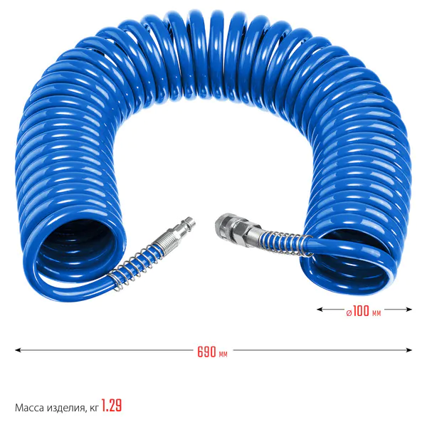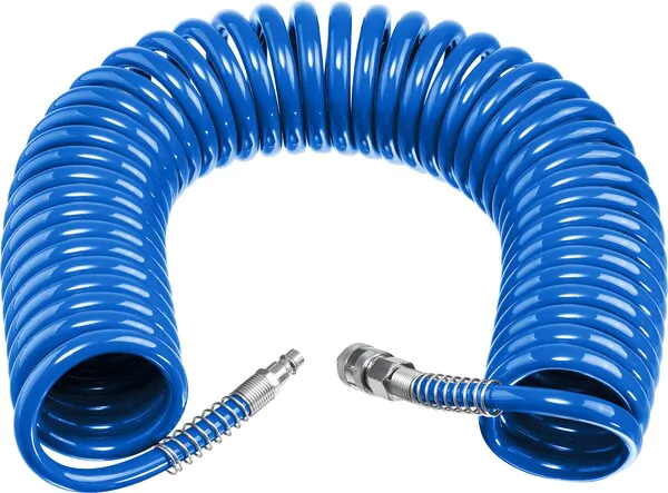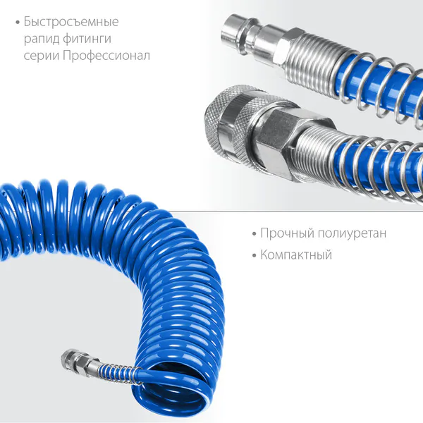 - ЗУБР 15 м, 8 х 12 мм, 15 бар, воздушный спиральный шланг с фитингами рапид, Профессионал (6472-15)