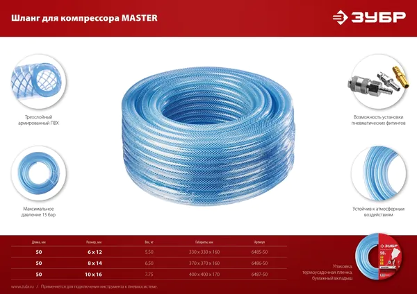 - ЗУБР 50 м, 10 х 16 мм, воздушный шланг (6487-50)