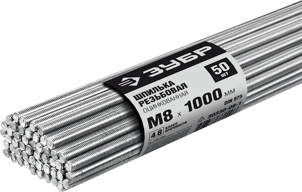- ЗУБР DIN 975, кл. пр. 4.8, М8 х 1000 мм, цинк, 50 шт, резьбовая шпилька (30330-08-1)