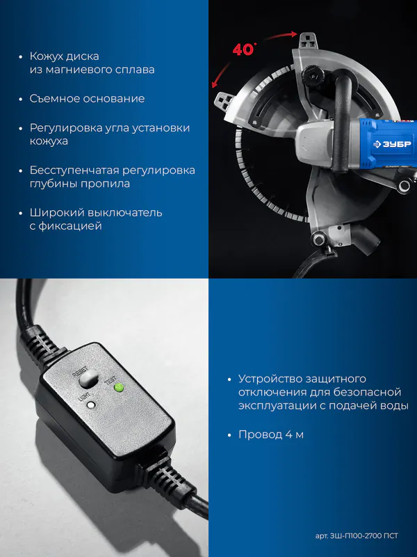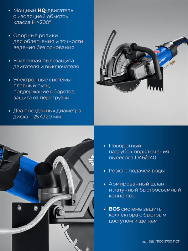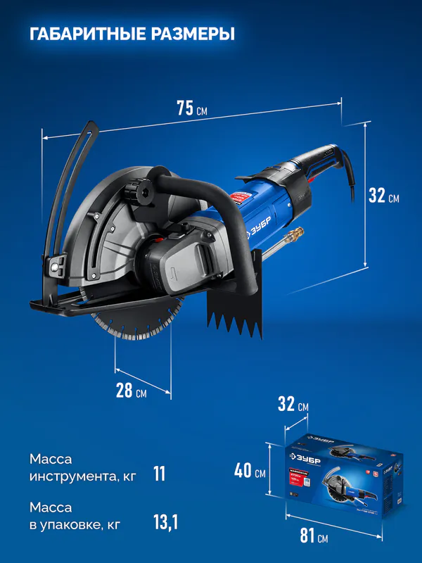 - ЗУБР d 305 мм, 2700 Вт, 100 мм, штроборез (бороздодел), Профессионал (ЗШ-П100-2700 ПСТ)