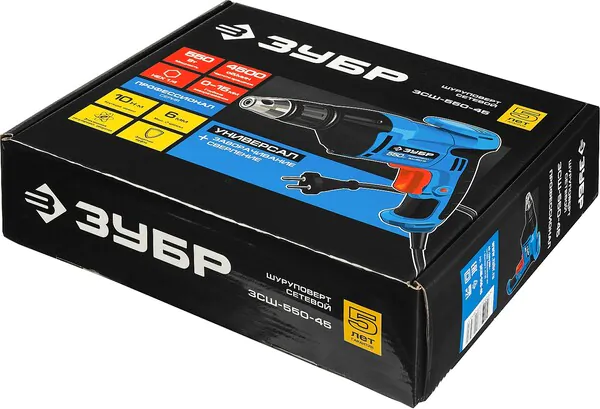 - ЗУБР УНИВЕРСАЛ, 550 Вт, 10 Н·м, сетевой шуруповерт (ЗСШ-550-45)