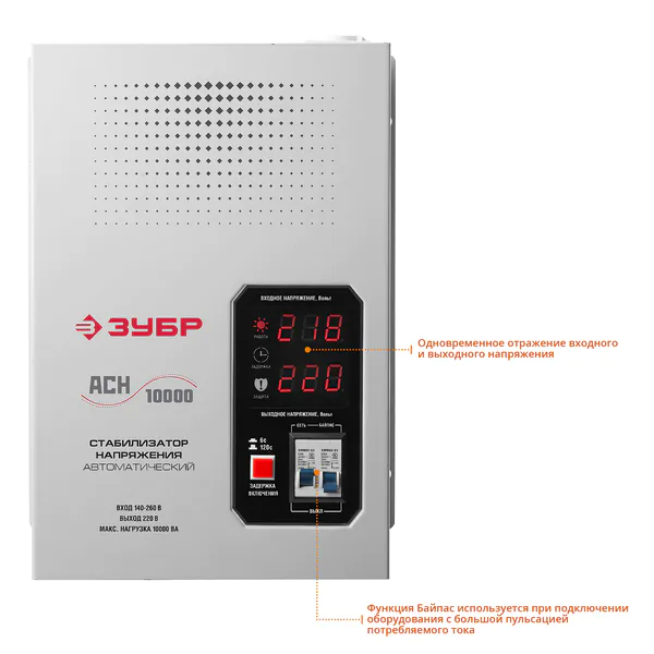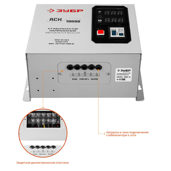 - ЗУБР 10000ВА, 10 кВт, автоматический стабилизатор напряжения, Профессионал (59387-10)