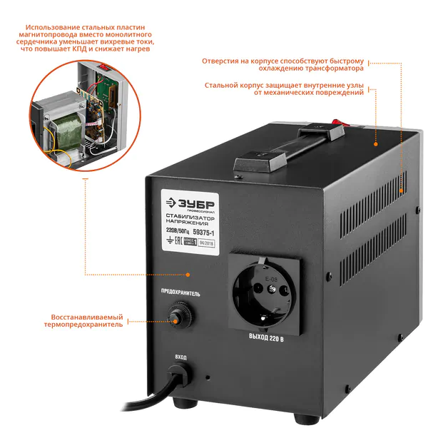 - ЗУБР 1000ВА, 1 кВт, автоматический стабилизатор напряжения, Профессионал (59375-1)