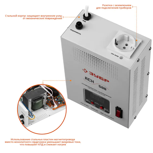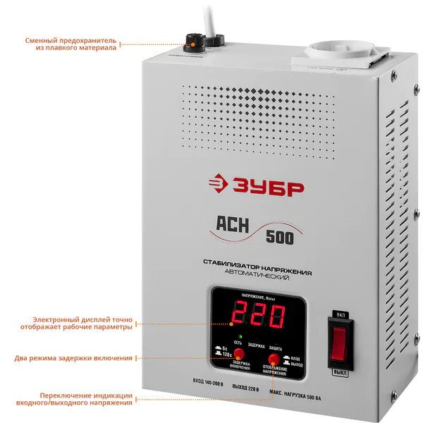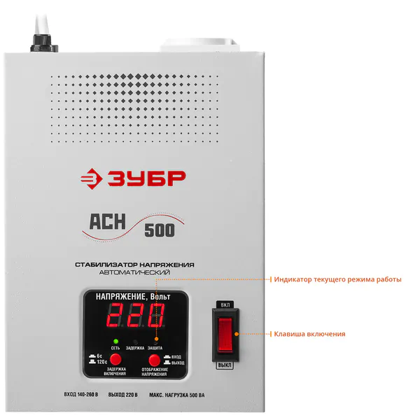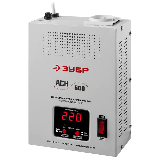 - ЗУБР 500ВА, 0.5 кВт, автоматический стабилизатор напряжения, Профессионал (59385-0.5) 59381-0.5