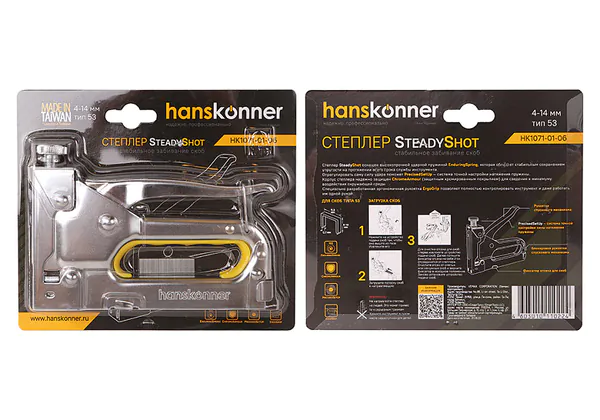 - • степлер мебельный регулируемый Hanskonner для скоб 53 (4-14 мм), с 8 мм скобами (53) 50 шт, HK1071-01-06.