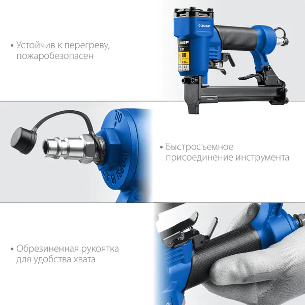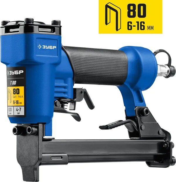 - ЗУБР Т80, пневматический степлер для скоб 21Ga, тип 80 (6-16 мм), Профессионал (31938)