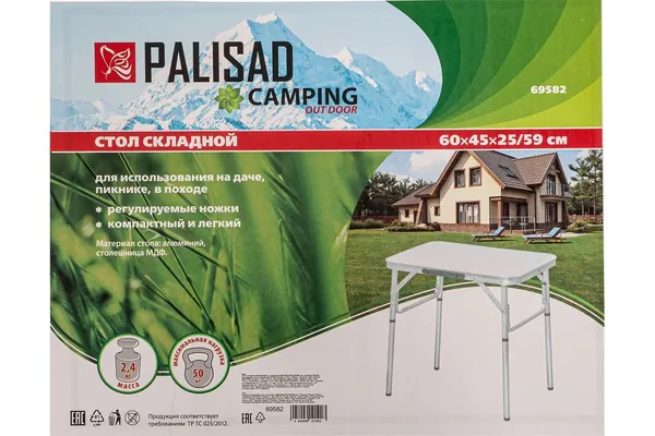- • стол складной алюминиевый, Palisad столешница МДФ 600х450х250/590 мм, 69582.