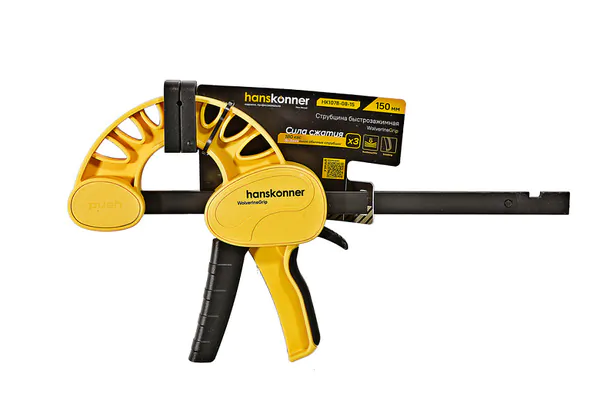 - • струбцина быстроз., Hanskonner 150 мм, резиновые накладки, 180-200 кгс, сжим-разжим, HK1078-08-15.