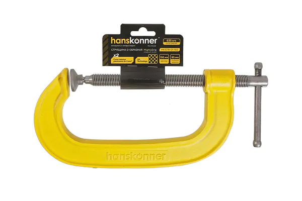 - • струбцина G-образная Hanskonner 150 мм / 6'', чугун, оксидированный винт, HK1078-01-150.