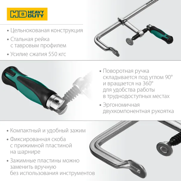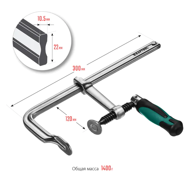 - KRAFTOOL Forge FF-300/120, 120 х 300 мм, цельнокованая струбцина F (32014-120-300)