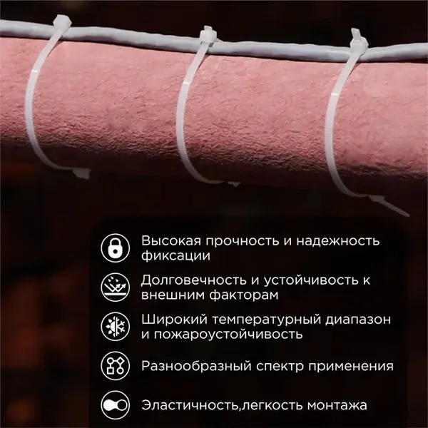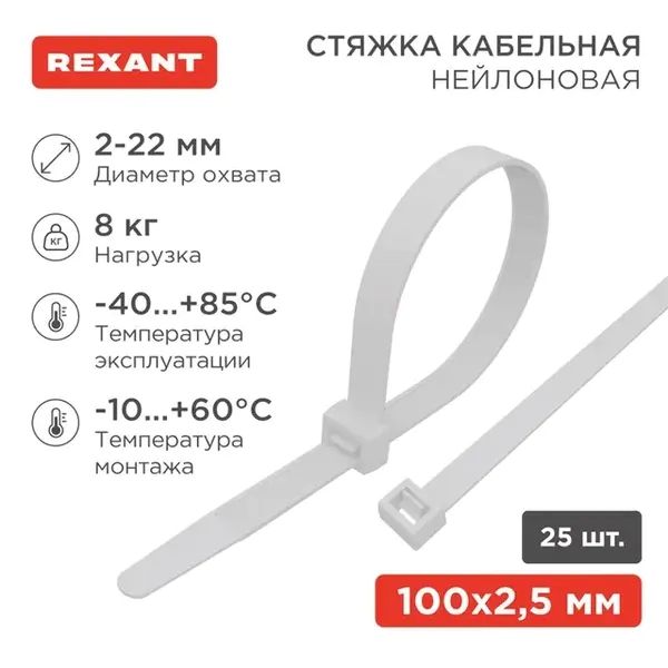 - • стяжки нейлоновые REXANT 100x2,5 мм, белая (25 шт/уп) 07-0100-25.