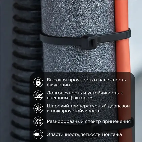 - • стяжки нейлоновые REXANT 200x4,8 мм, черная (100 шт/уп) 07-0201-5.