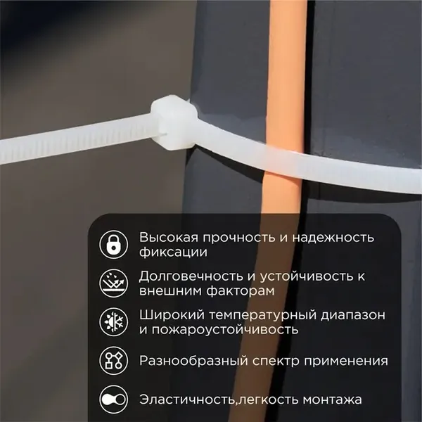 - • стяжки нейлоновые REXANT 250x3,6 мм, белая (25 шт/уп) 07-0250-25.