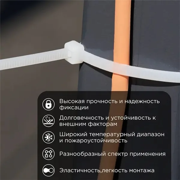 - • стяжки нейлоновые REXANT 250x4,8 мм, белая (100 штук) 07-0250-5.