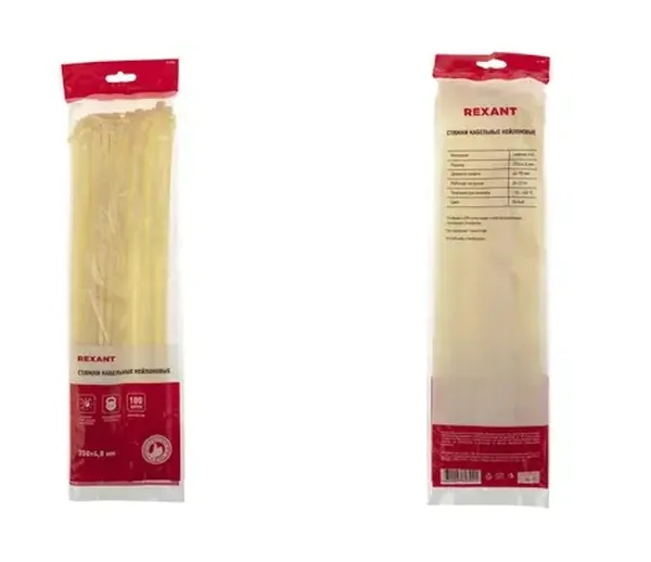 - • стяжки нейлоновые REXANT 350x4,8 мм, белая (100 шт/уп) 07-0350.