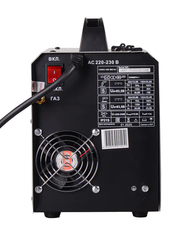Гарантия, мес24Диапазон регулирования сварочного тока в режиме MIG/MAGНапряжение дуги в режиме ММАКоличество роликов, штГорячий стартДаСтепень защиты от пыли и влагиMax диаметр электрода, мм3Масса катушки, кг5Длина проводов, мКоличество фазДиапазон регулирования сварочного тока в режиме ММАТип горелкиДлина кабеля, м1.5Кабельный разъемРабочая температура, °Сот -20 до +50Форсаж дугиДаНапряжение дуги в режиме MIG/MAGПроизводительРесантаДиапазон входного напряжения, ВСварка порошковой проволокойДаПотребляемый ток, А20Напряжение холостого хода, В55Функция 2Т/4ТДаТип сваркиЧастота питающей сети, ГцАнтизалипаниеДаКПД, %85Рабочее напряжение ММА, ВНоминальный ток, А15Степень/класс защитыПВ на максимальном токе, %70Max мощность, Вт4600Диаметр проволоки, ммФункция дожигания сварочной проволокиДаСварка алюминияНетГабариты товара (ДхШхВ), мм300*140*270Масса нетто, кг8.5Габариты упаковки (ДхШхВ), мм340*150*25